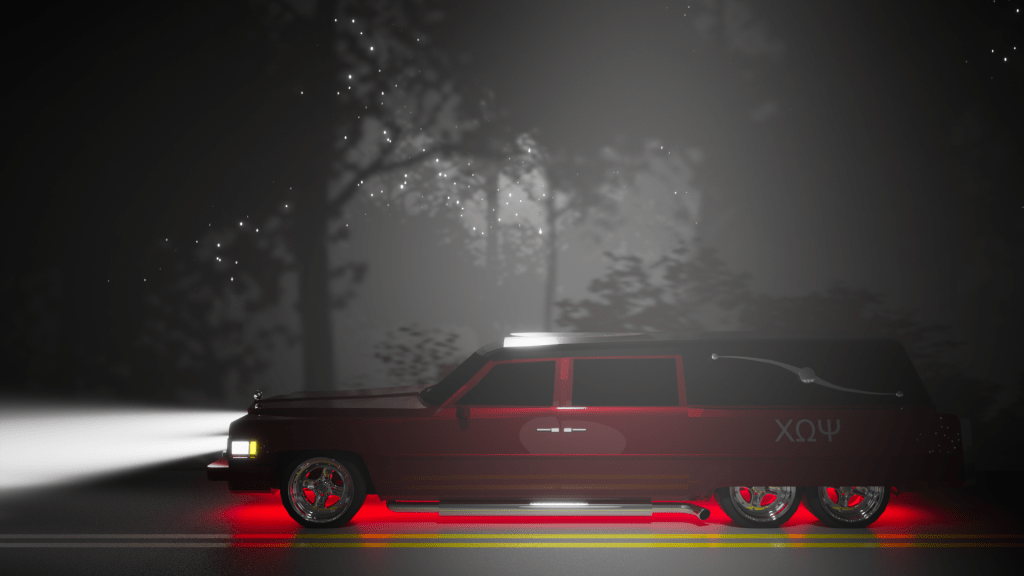 Forget the shambling, hawk-nosed necromancers of old – Alexis Necromancess is a queen bitch death witch. Not only is she the top student at Dunmere University – the Harvard of central Indiana – she’s also the president of Chi Omega Psi, the only sorority with a blood lineage tracing all the way back to an ancient Greek cult of Persephone! This sex-positive sorceress uses her feminine wiles to lure unsuspecting campus innocents to the majestic Persephoneum hidden away in the depths of Chi Omega Psi’s neo-classical abode. Free transportation provided in her vintage 1975 Hearse!